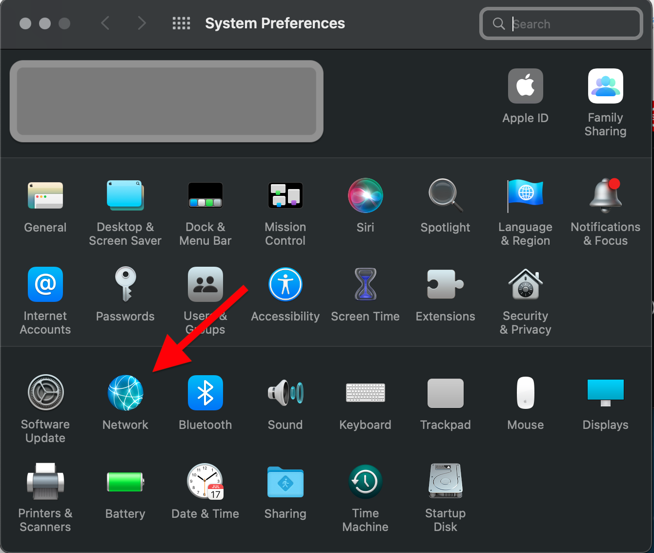 2. Click on Network.